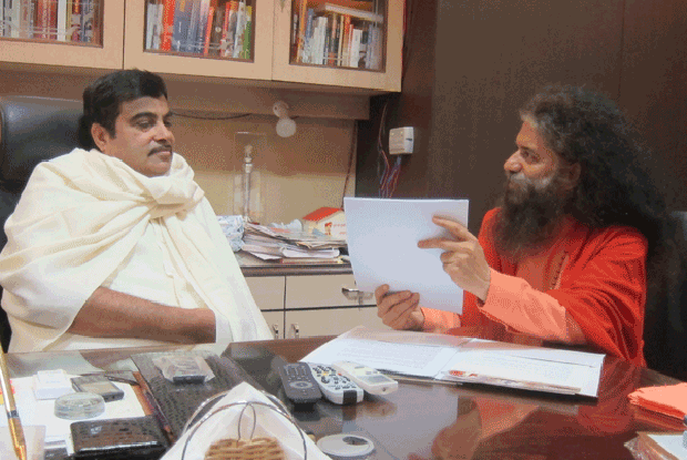 Pujya Swamiji and Shri Nitin Gadkari, President of BJP, had a meeting to discuss the various problems facing the river Ganga. They discussed efforts that the government can take to address and solve all the issues facing Ganga from pollution to obstruction, and how the government can work hand-in-hand with the people to restore Ganga and Her tributaries.