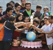Over 200 students participated in helping to clean up Mother Ganga. These students also joined in a water ceremony pledging to uphold the sanctity of water.