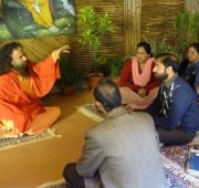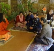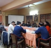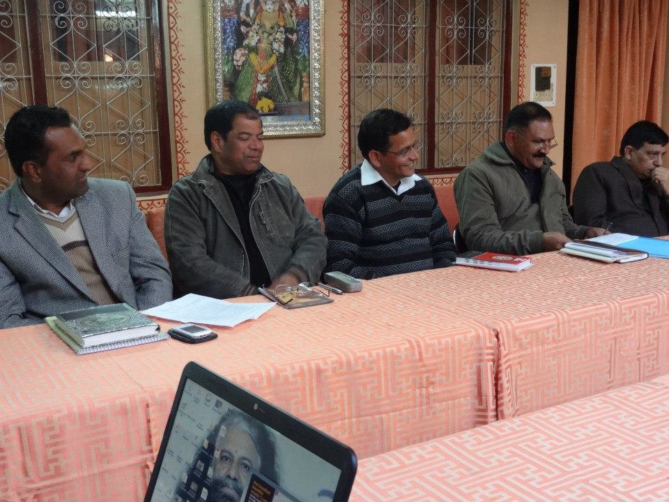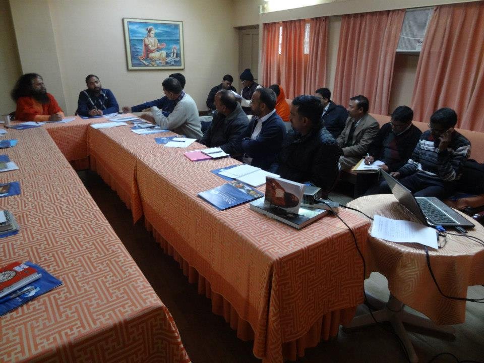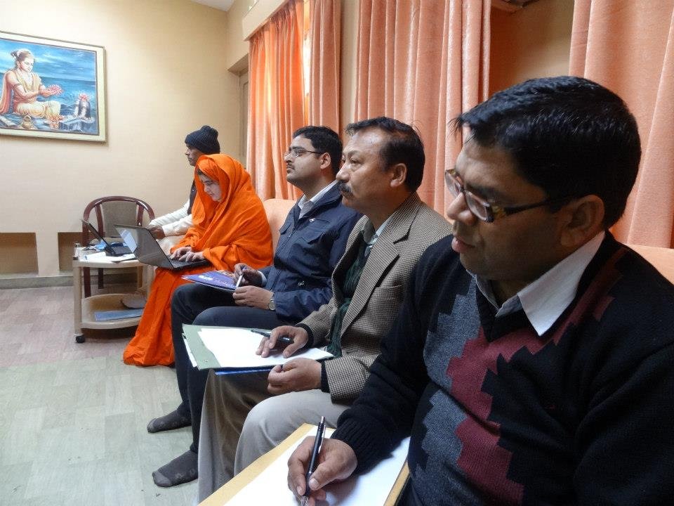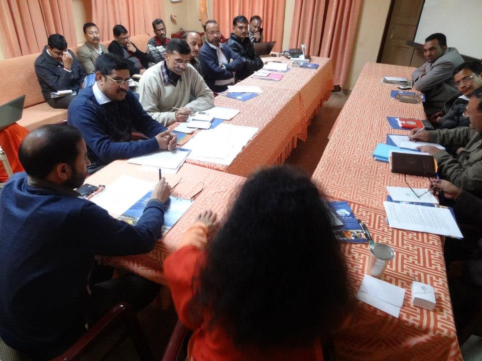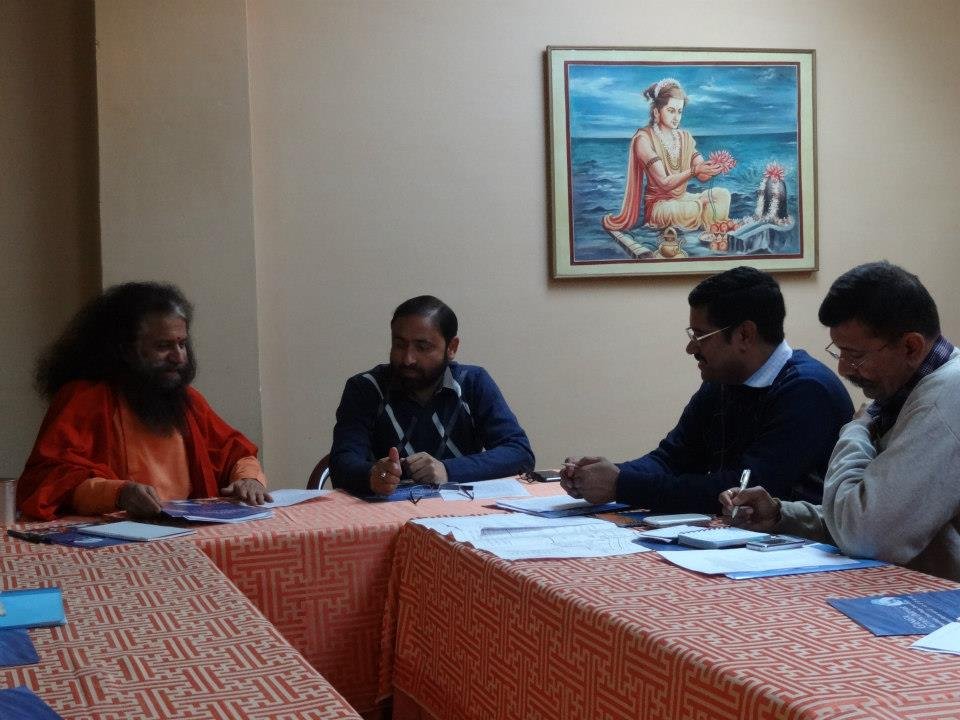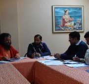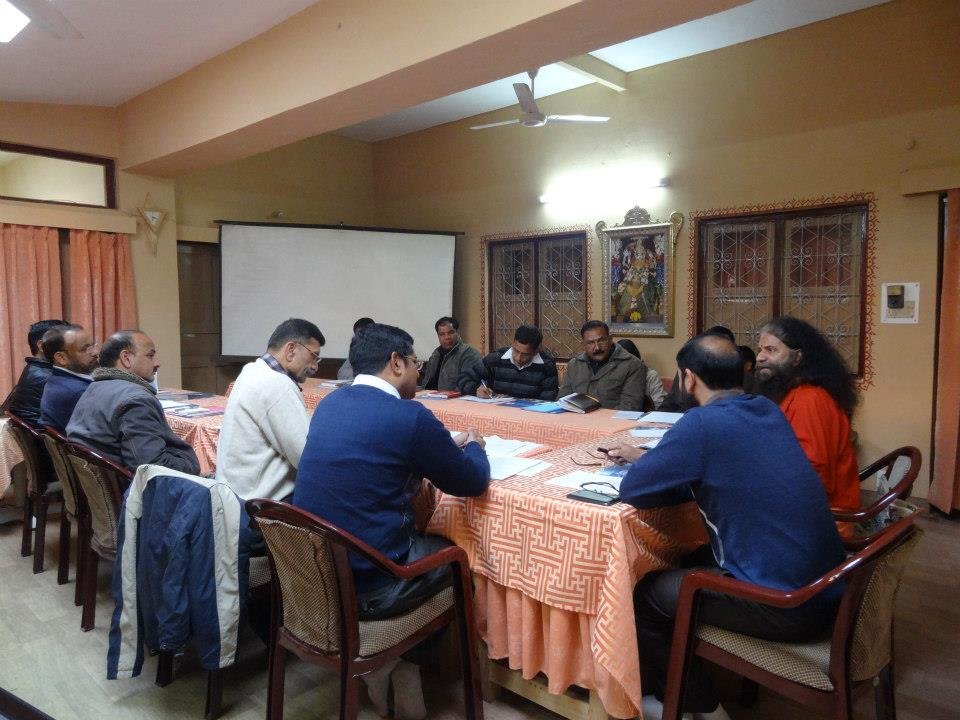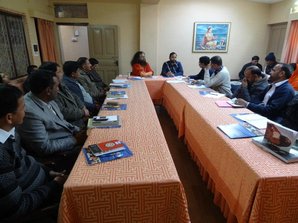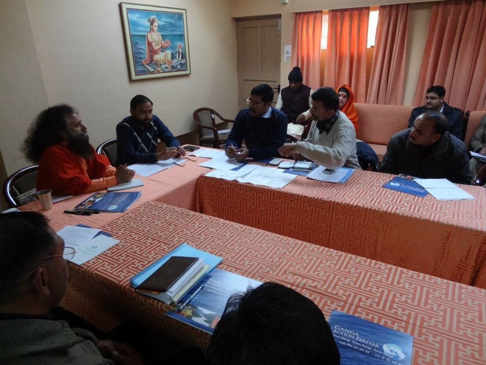 A follow-up meeting was held today in Parmarth Niketan (Rishikesh) under the leadership of Honorable Minister of Urban Development Of Uttarakhand, Shri Pritam Singh Panwarji, and with the guidance and vision of Pujya Swamiji. The team of nearly twenty members of the Ministry and Ganga Action Parivar are working closely together to create a pilot model of a clean and green Swargashram (Rishikesh) to set an example to all of the nation of a Green Pilgrimage Site. Concrete action plans were developed to implement solutions and management of trash, sanitation facilities, including bio-toilets and clean drinking water, sustainable road connectivity and cow protection programmes in the local area.