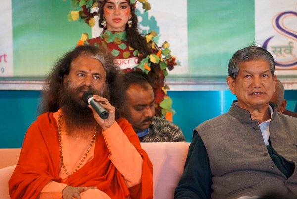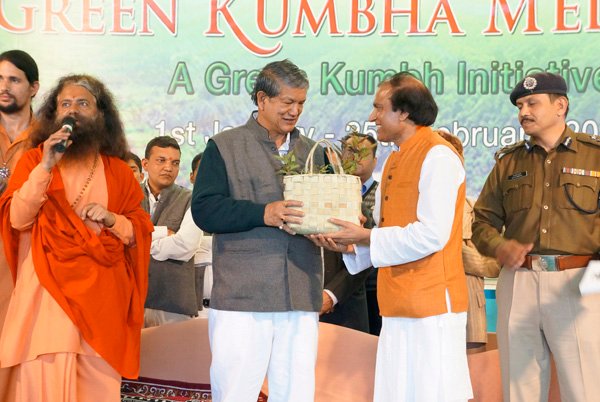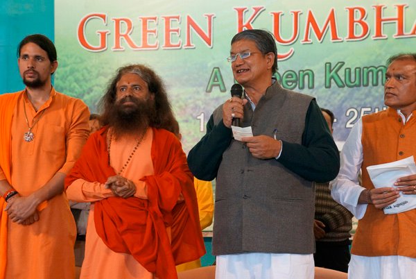 Allahabad – Today, the Respected Union Minister for Water Resources, Shri Harish Rawat, came to the Ganga Action Parivar Camp in the Kumbha Mela. At a function organized and led by Pujya Swami Chidanand Saraswatiji, the Founder of Ganga Action Parivar and President of Parmarth Niketan, Shri Harish Rawatji officially launched – with many revered saints — the National Ganga Rights Movement. The movement, which is being spearheaded by Ganga Action Parivar, is promoting the National Ganga Rights Act to protect and restore one of the world’s most precious and beloved river systems.