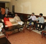 Respected Tarun Vijayji said, just as Pujya Swamiji often says, that we often have a tendency to blame others for our problems but that in this situation no one else is to blame for the pollution of our rivers but the people of India themselves. He urged that reduction of plastic waste could significantly prevent choking up our water ways and sacred soil. He pledged that he would with the help of other delegates present like to create a ghat during the Kanwad Mela where religious waste would be appropriately disposed of, and he asked Pujya Swamiji to bring together religious leaders to make a collective announcement to the public about alternatives to common practices that are polluting the sacred water bodies. He said that Sanatam Dharma is something which must be flexible and dynamic with the changing times, and time had come that a paradigm shift occurred in traditional practices, re-evaluating the impact of our religious and cultural practices on the river’s ecosystem.