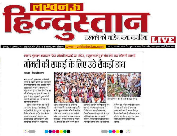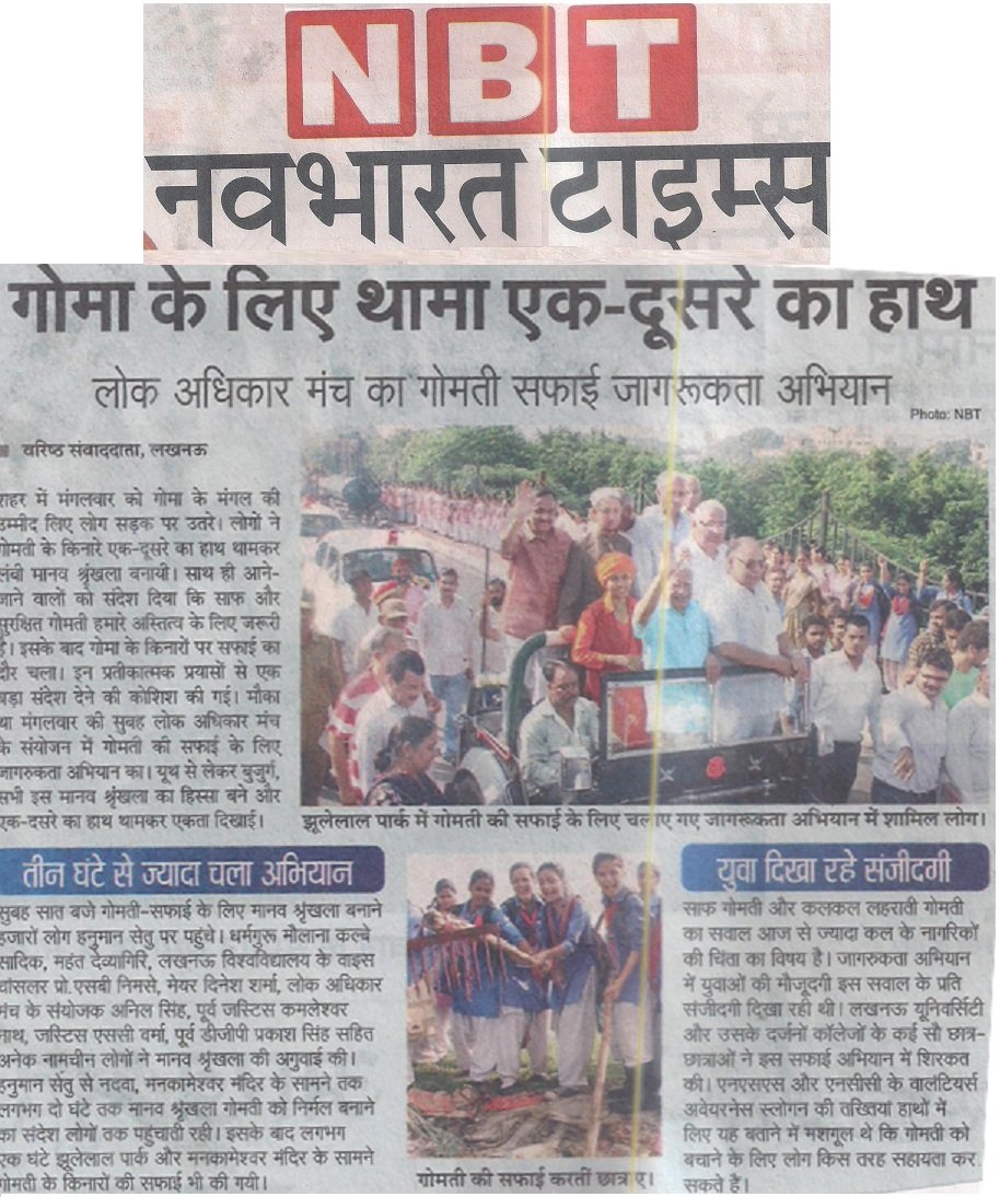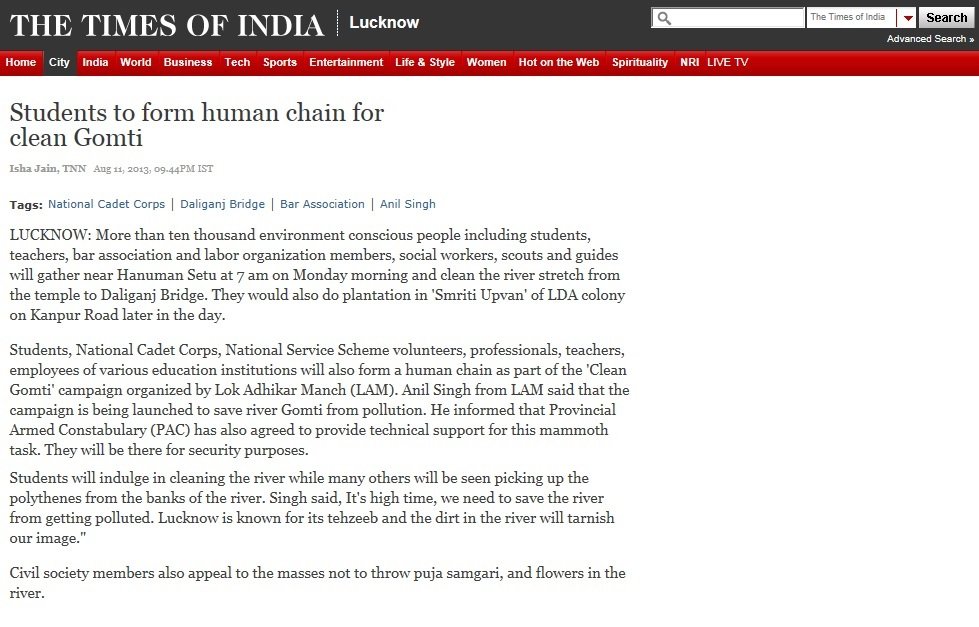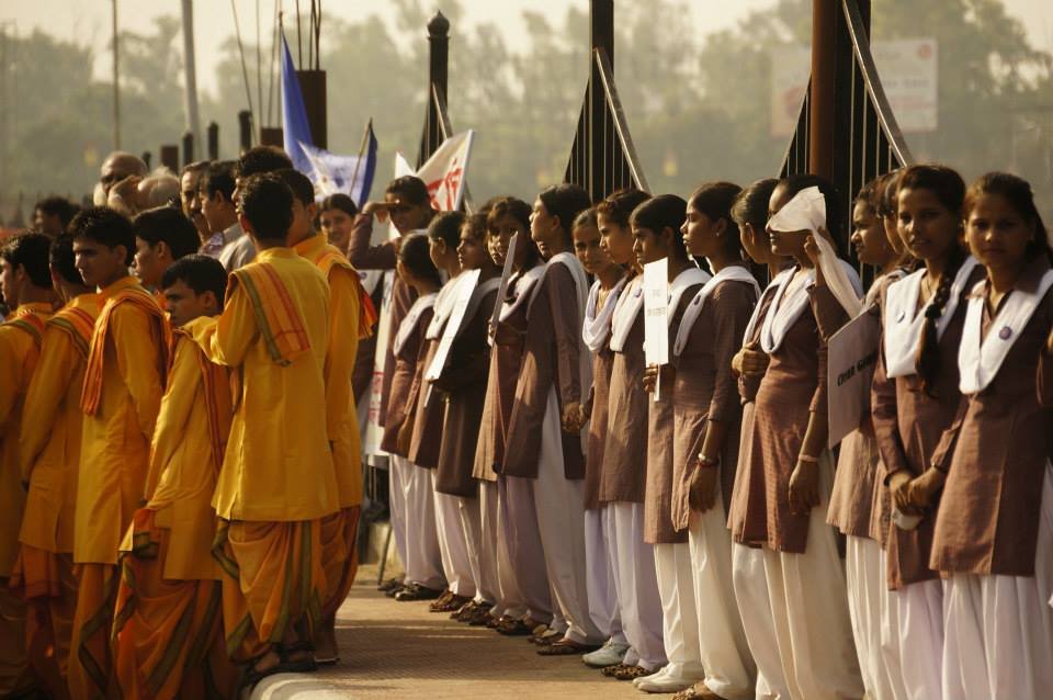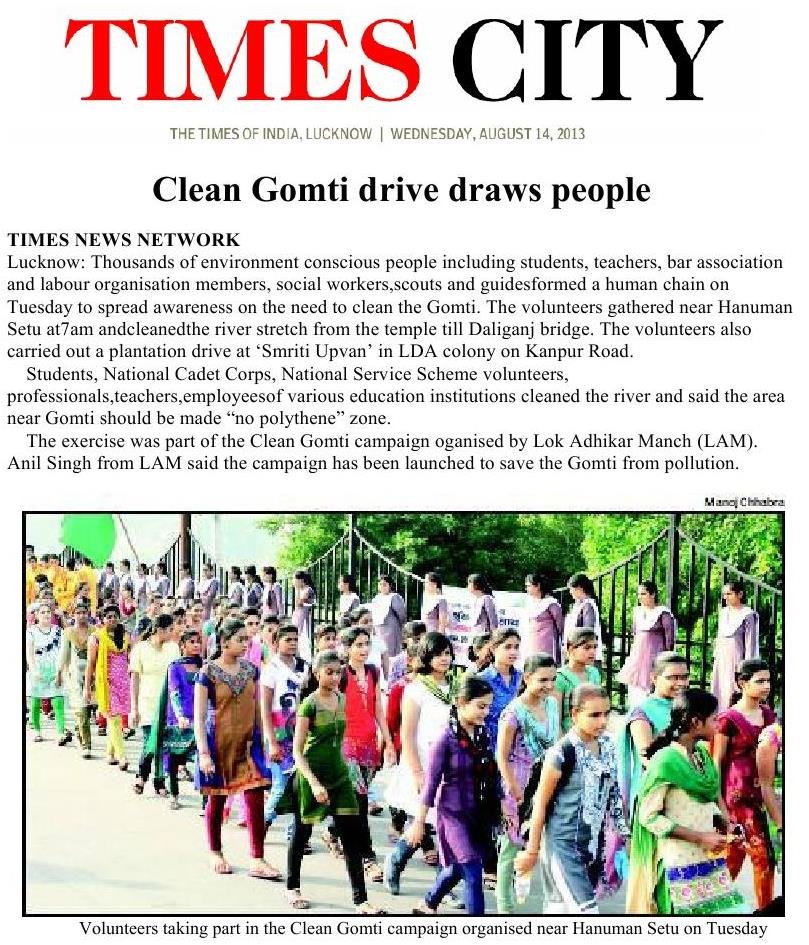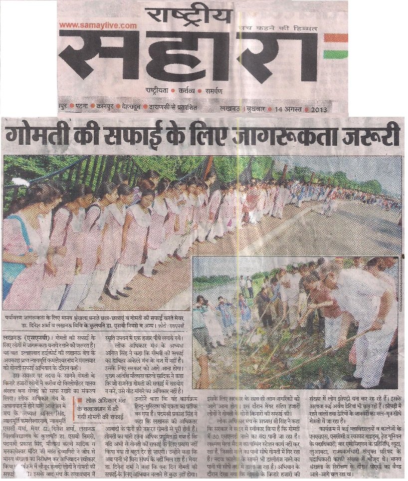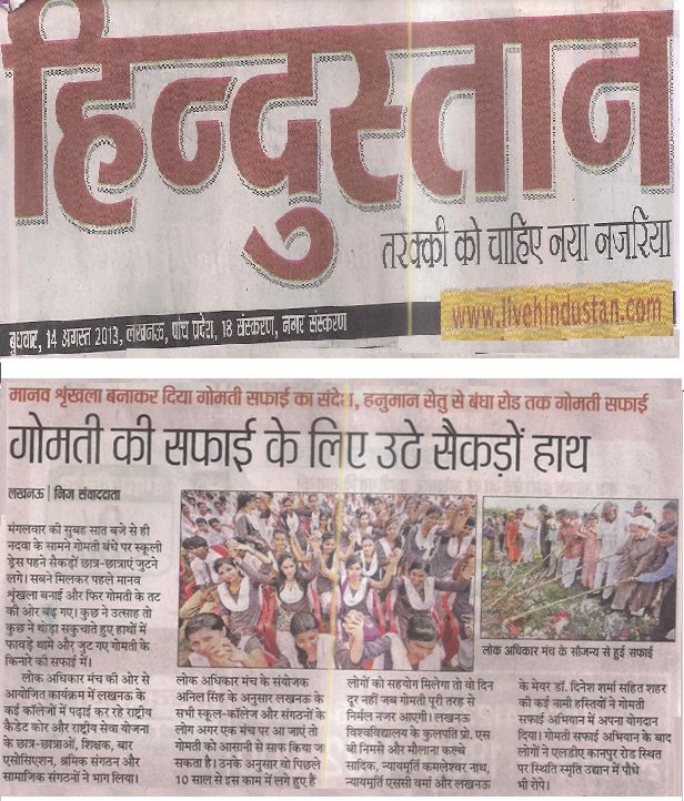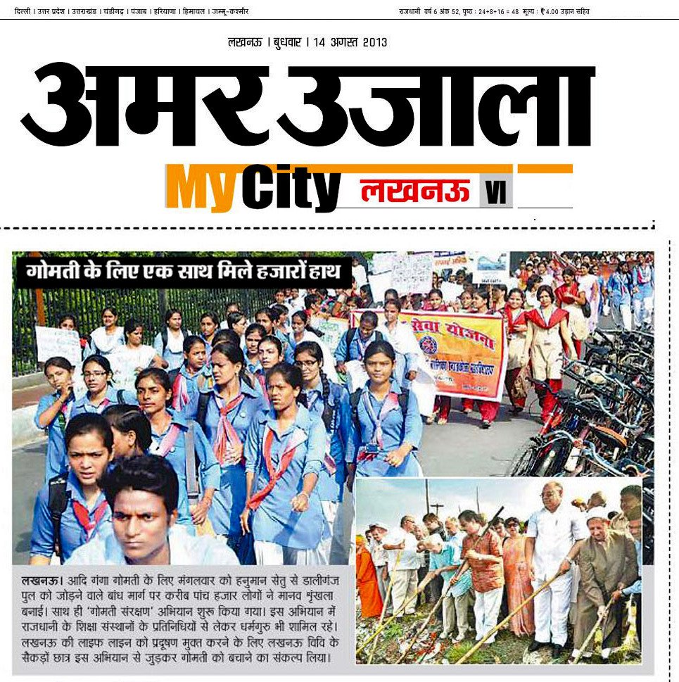 Thousands of students and youth from many of Lucknow’s schools and universities lined the banks of the River Gomti to form a human chain-symbolizing that they stood together as one from any different faiths and backgrounds. It also symbolized that united and by working together they could address their cities major challenges and serve to restore a free-flowing and unpolluted River Gomti- their cities main source of fresh water.