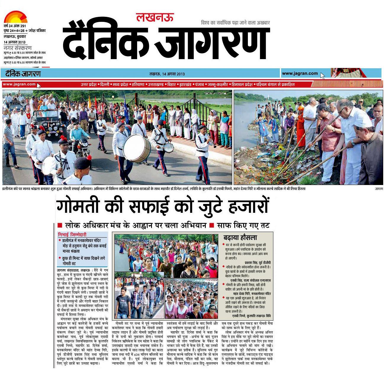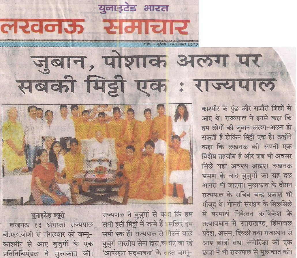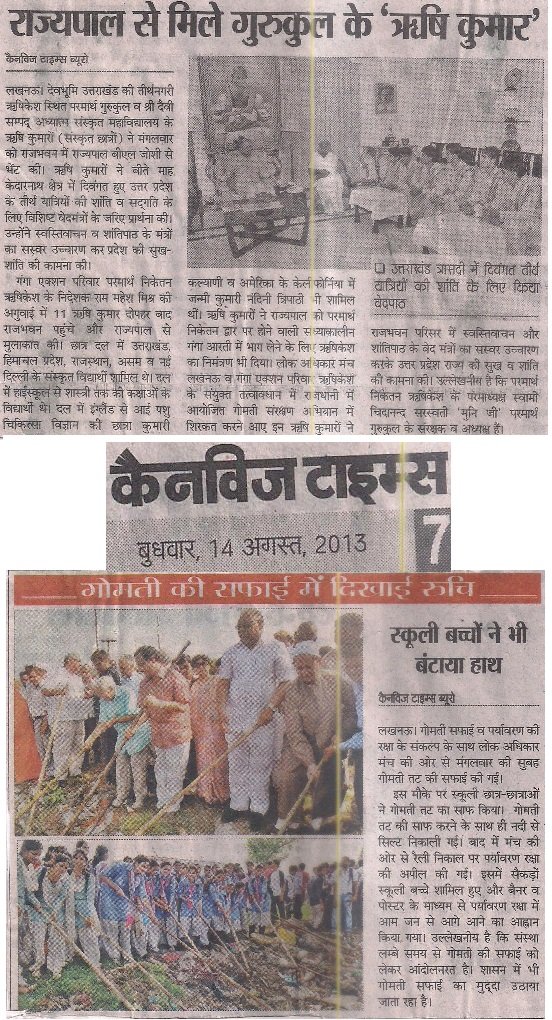 The gathering was organized and hosted by Lok Adhikar Mandal, supported by Lucknow University, NSS, NCC Scouts, Ganga Action Parivar as well as many other governmental and non-governmental organizations. The students were addressed and encouraged by Respected Maulana Dr. Kalbe Sadqji, Justice Kamleshwar Nathji, Justice SC Vermaji, Padamshree Prakash Singhji, and many other revered and eminent leaders. All speakers congratulated them on being able to stand as an example for the world to follow and encouraged them to utilize their yuva shakti (the power of their youth) to bring about positive change in their society and preserve their sacred environment for their future generations.