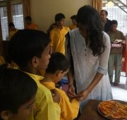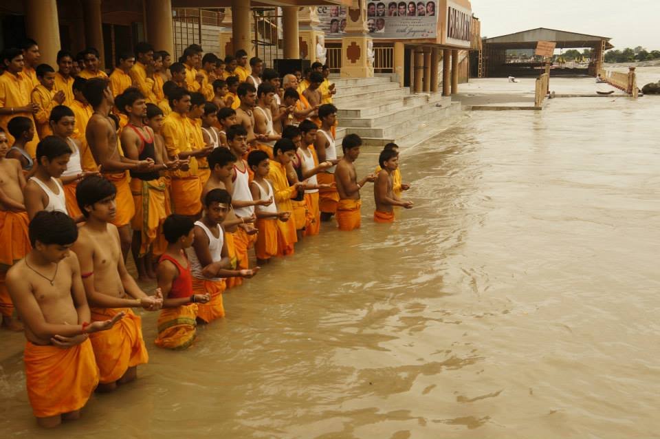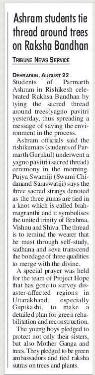 On this special day peace prayers were also offered for the successful yatra (journey) of the next team of Project Hope volunteers. The boys tied a rakhi to the Project Hope team members and prayed that the blessings and vision of Pujya Swamiji will guide and direct them in this vital service. Journey of this team coincides with the completion of the second phase and the beginning of the third phase of green rehabilitation. They will survey the flood-affected regions in Uttarakhand, especially focusing on villages such as Rail-Ravi Gram, Semi-Bhainsari, Tosi-Triyuginarayan (Guptkashi), Pulna and Bhyundar (villages that sustained the caretakers of Valley of Flowers), Parodi (Tehri-Garhwal), as well as some in Uttarakashi which remain in need of assistance and support of an organization to revive their land and their lives.