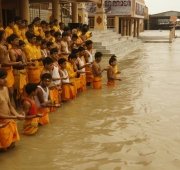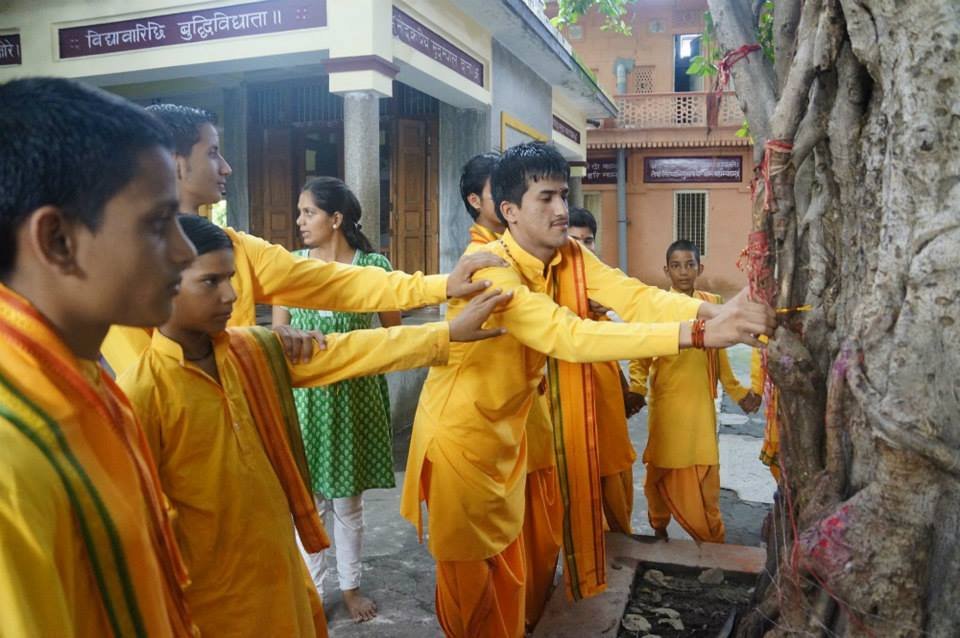 The festival of raksha bandhan was also celebrated with the customary tying of rakhis by the young girls and sevikas to the rishikumars as their brothers. The rishikumars along-with their Ganga Action and Parmarth Parivar (family) tied raksha sutras to all trees in the campus along with a pledge to protect not only their sisters–as a form of divine feminine–but also to serve Mother Ganga and conserve the environment. They vowed to be Green Ambassadors and coloured this traditional holiday with a green touch as inspired by the divine vision of their Green Guru-Pujya Swamiji. Special honor was given to trees as Nature’s divine examples of the ultimate rakshak (protector), which serve unconditionally with no hesitation, no expectation, no discrimination and no vacation to protect Mother Earth, Mother Ganga and all of life.