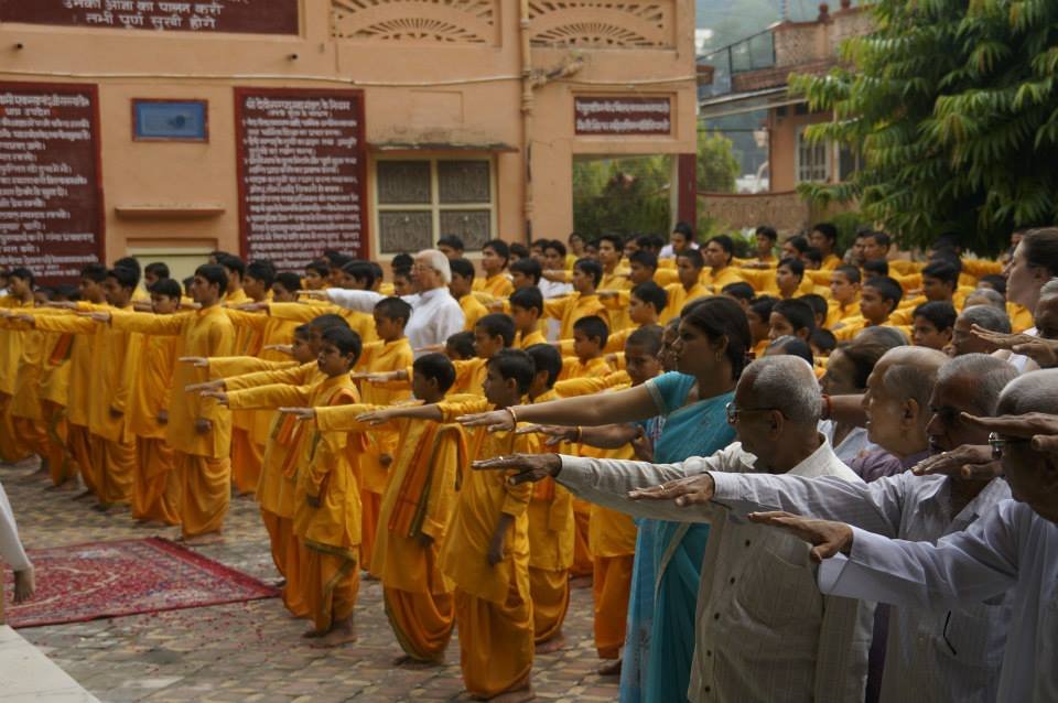 A very special Independence Day ceremony was held at Parmarth Niketan in which the Rishikumars of Parmarth Niketan joined together with all of the Ganga Parivar to hoist the national flag and sing the national anthem. Pujya Mahamandeleshwar Swami Asanganand Saraswatiji blessed the gathering and explained that even as the country is celebrating the completion of 66 years of independence the key to addressing the many challenges that face our nation is not by finding faults in others and blaming outside countries for our problems. Instead, as Pujya Swami Chidanand Saraswatiji also teaches us, that we must look within to find our own faults and weakness and bring them into light of our awareness. Pujya Mahamandeleshwarji said that, ‘It is the freedom that comes from knowing that the problem and solution lie in our own hands that we achieve true Independence– that is what is needed in our great nation today.’