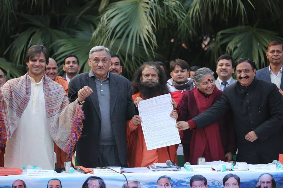 Vivek Oberoi said: “Pujya Swamiji’s great vision and tireless dedication from day one has continued to inspire and motivate all of us. His dynamic and innovative spirituality has brought us all together. Pujya Swamiji is a Green Saint with a Green Vision bringing us all together to be Green Heroes in our everyday lives. Let us work together to create Ganga Parivar Sevaks all along the banks of Mother Ganga and use Ganga Patrolling Systems, new technologies, to safeguard and restore our sacred rivers and preserve Mother Nature. ”