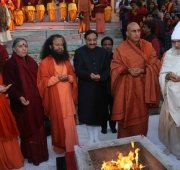 Following the conference, the participants expressed their deepest gratitude to the Mother River Ganga in a very special Ganga Aarti ceremony graced by the presence of His Excellency the Governor Dr. Aziz Qureshiji. The evening ceremony was led by Pujya Swami Chidanand Saraswatiji in which the tireless work of the Army, BSF, BRO, and all dedicated volunteers were appreciated and lauded and which included a special prayer for all those families who lost loved ones in the tragic floods.