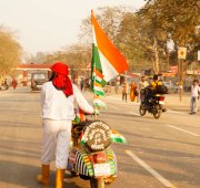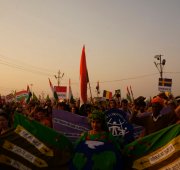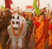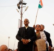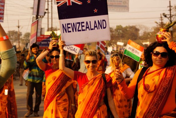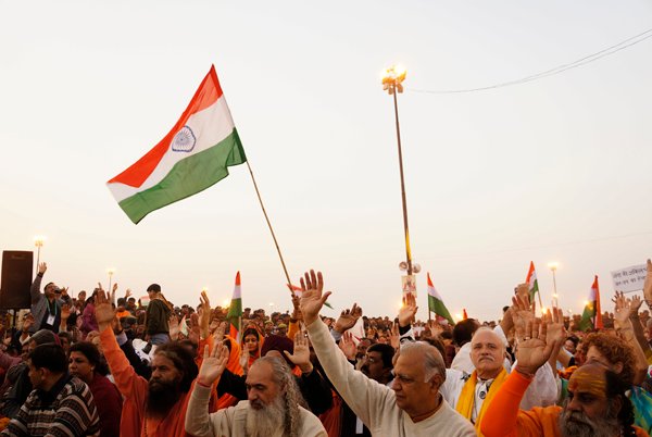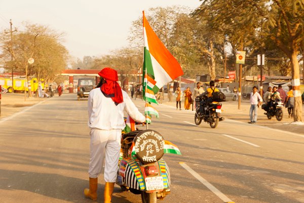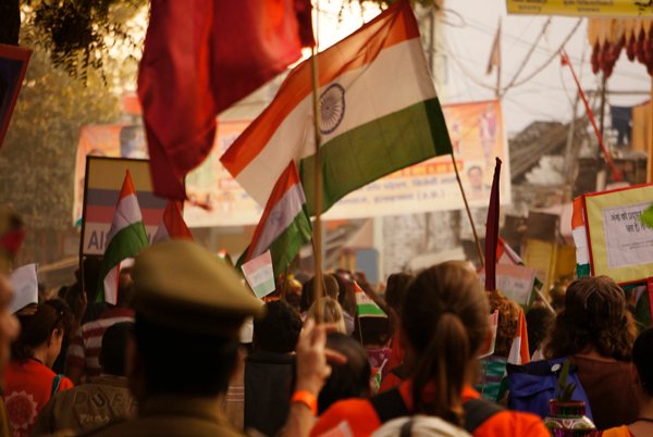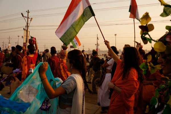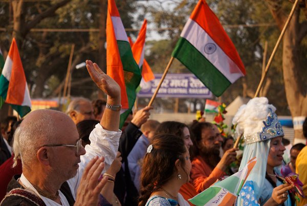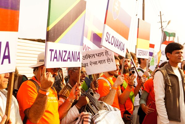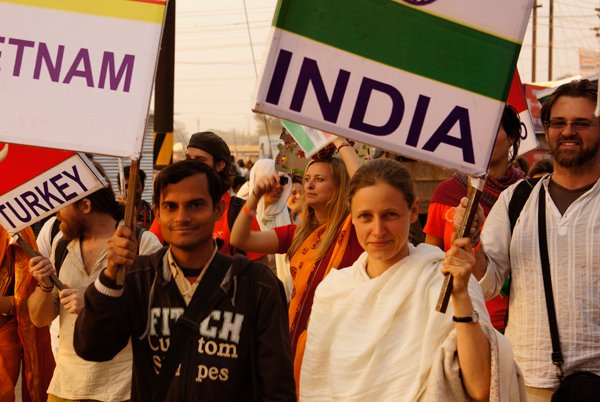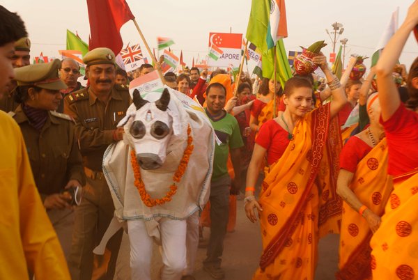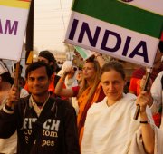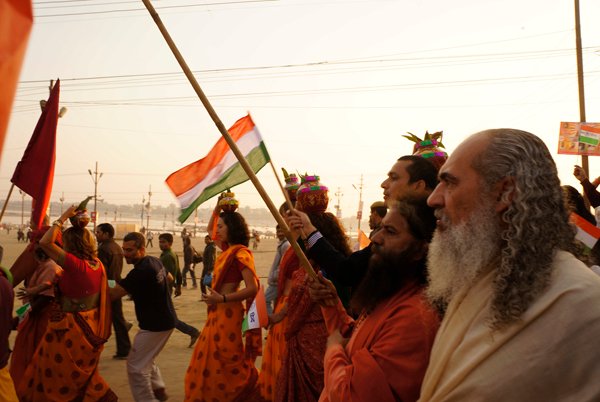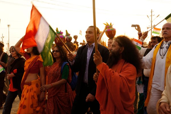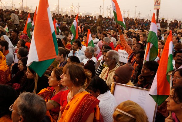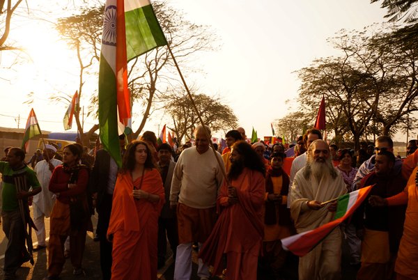 Allahabad – More than a thousand people – from across India and around the world – marched together to celebrate India’s Republic Day on the banks of the Ganga at the Kumbh Mela today, as part of an environmental parade to call for India’s independence from pollution and to pay homage to the war heroes, who have faithfully served India’s past.