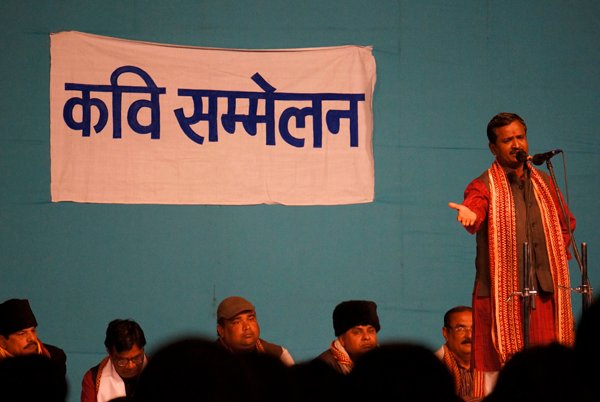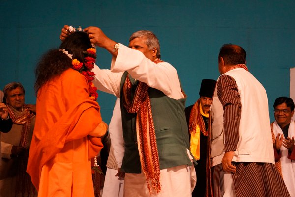 Speaking at the opening of the evening, Pujya Swamiji spoke about the beauty and importance of literacy – how it provides a light in the darkness, and how through literacy the country moves forward. Furthermore, in determining how a society moves forward, poets have always contributed, and thus Pujya Swamiji was happy to welcome all the poets to the banks of Ganga and Yamuna at the Sangam. Pujya Swamiji spoke about how through the words of the poets, Mother Ganga could be restored and protected, once again flowing free and clean.
