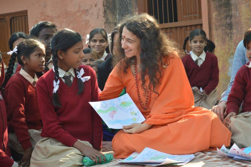 Sadhviji recognized the best ten drawings and applauded the rest for their beautiful efforts. Touched by their pictures with messages to Save Ganga, Save Earth, Sadhvi Bhagawatiji shared, “Tragically, the current way that our Mother’s waters are treated is actually killing these very waters. Mother Ganga, as the Divine, is un-taintable, un-pollutable and un-defilable. However, Her physical form, these precious molecules of H2O which are the very life and livelihood of approximately one-third of India’s population, are polluted every day with nearly 3 billion liters of waste, including carcinogenic chemicals and raw sewage. Added to this is solid waste, such as discarded poly bags, wrappers and plastic bottles, which choke the river, sully Her shores and sicken millions who live in Her basin.”