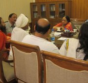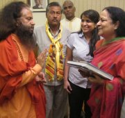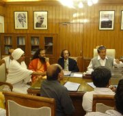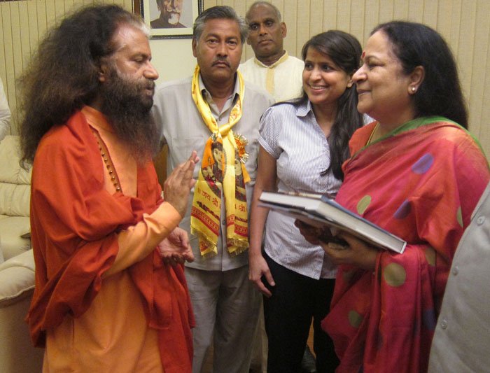 Above picture: Pujya Swami Chidanand Saraswatiji, Baba Jai Krishna Dasji, Pankaj Babaji and others meeting with Minister of Water Resources Shri Harish Rawatji and Minister of Environment Smt. Jayanti Natarajanji.