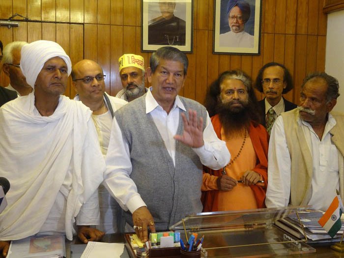 Shri Harish Rawatji assured the protesters that within 2 months the assessment work for the canals would be carried out and that construction will begin as soon as possible. He also assured that he would do whatever is in his capacity as Minister and working alongside with the Ministry of Environmental Affairs to ensure that a significant percentage of Yamuna water remains flowing “aviral” in the Yamuna riverbed rather than being diverted. He effusively appreciated the role of Pujya Swami Chidanand Saraswatiji as mediator, with clarity and vision for ways to solve problem that are acceptable to all sides. He also appreciated Pujya Swamiji’s tireless and complete dedication to Ganga and Yamuna.