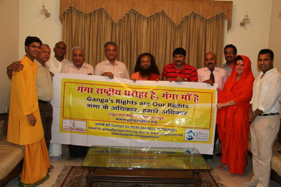 Members of Ganga Action Parivar met with Pujya Swamiji in Delhi to discuss the proceedings of the action plan for the River Yamuna and National River Ganga on the evening of World Environment Day. A delegation of Ganga Action Parivar was scheduled to meet the next evening with the CEO of the Delhi Jal Board, Ms. Debashree Mukherjee, about the status of the pollution abatement plan for Yamunaji in Delhi. They discussed the key points and questions for this meeting. A film on the pollution in Yamuna was also screened by Dr. KD Guptaji and the recommendations from the previous national workshop were reviewed by other key experts present.