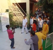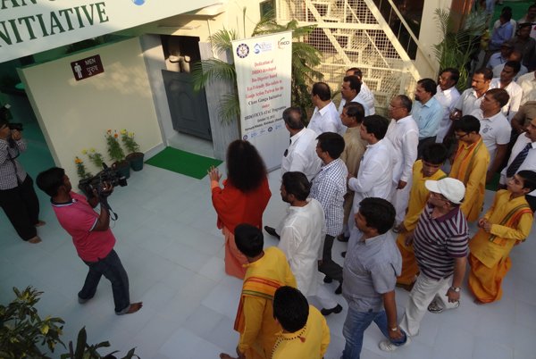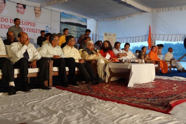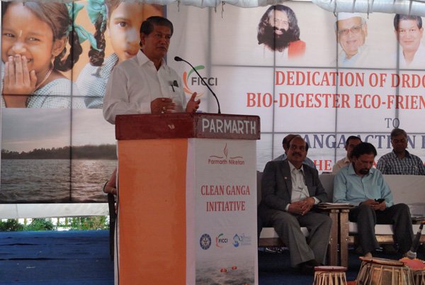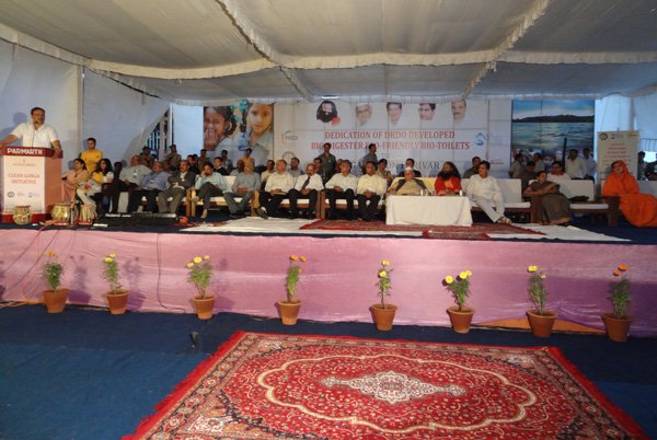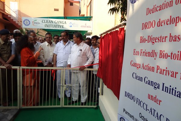 Esteemed government leaders, scientists and sevaks gathered together today to officially inaugurate the new eco-friendly, bio-digester toilets built at Parmarth Niketan Ashram, Rishikesh through the cooperation and hard work of DRDO, FICCI and Ganga Action Parivar. These toilets, which provide an environmentally-friendly and sustainable solution to the major sewage crisis India is facing, are the beginning of a partnership between these three entities which will help to bring eco-friendly toilets throughout the Ganga River Basin. In the first stage alone, 5,000 toilet blocks will be built hand-in-hand along the banks of Ganga in Uttarakhand.
