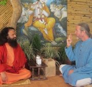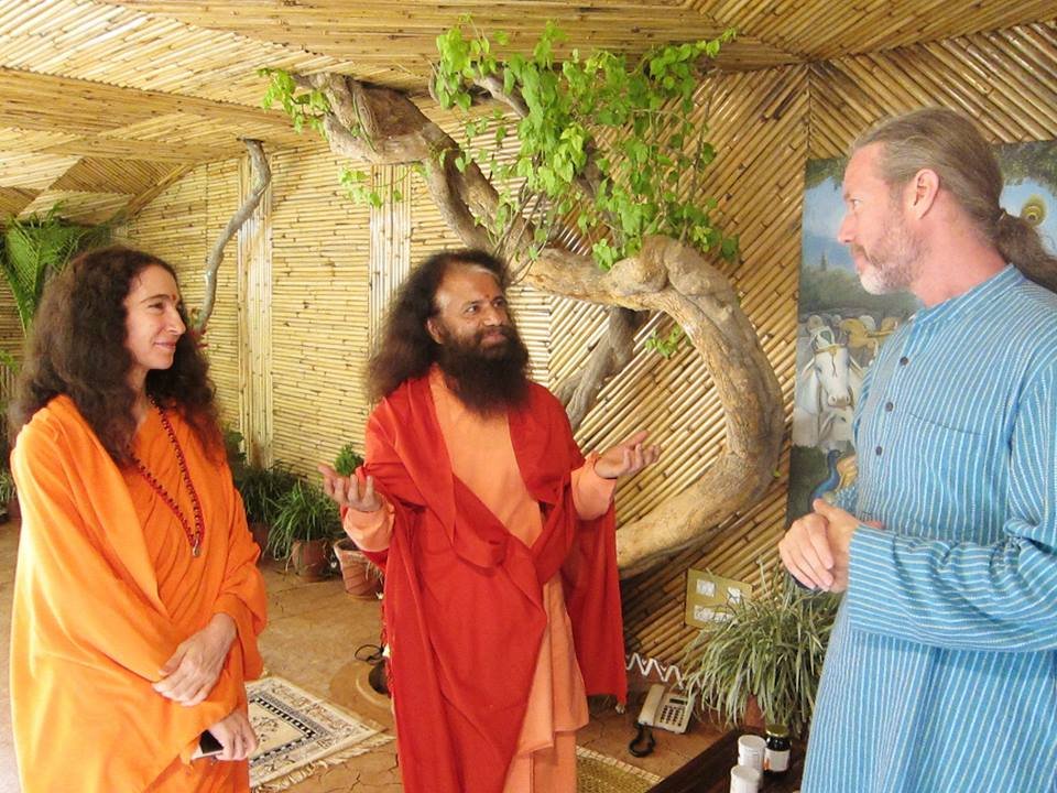 Founder and President of Organic India, Bharat Mitraji and President of Earth Organization, Barbara Wisemen visit Pujya Swamiji to discuss plans to bring back organic, herbal and hut culture to the holy banks of Mother Ganga. Amongst the many important points of discussion were: