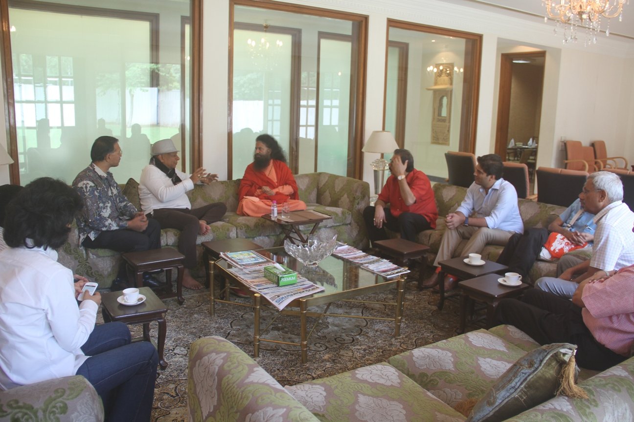 Pujya Swamiji commended these efforts and shared that this was a shining example of media social responsibility providing healthy alternatives and holistic entertainment to the television industry. He urged that through media shakti (the power of media) we can raise awareness on important issues such as the degradation and neglect of our sacred rivers and our environment, in this way we could mold the youth and the next generation of the country providing them not only positive examples, inoculating them with human values but also providing healthy opportunities to serve their nation and make our collective future more clean, green and serene.