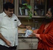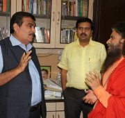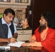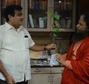 Pujya Swamiji met with Shri Nitin Gadkari, the Hon’ble Minister for the Government of India of Roads, Transport, Shipping and Highways as well as Rural Development and offered him a sacred Rudraksh tree at his official residence.