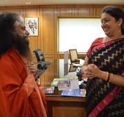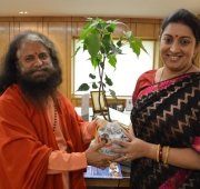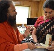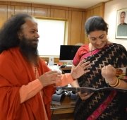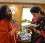 Pujya Swamiji met with Smt Smriti Iraniji, Hon’ble Minister of Human Resource Development, Government of India. He spoke to her about the need for every school to incorporate green values into their curriculum and daily activities. He shared that every school across India must be equipped with basic facilities and green technologies, such as bio-toilets and bio-sand filters, ensuring provision for clean water and adequate sanitation and hygiene facilities which are key to improving our children’s quality of education. These technologies could be developed in a hands-on way in which the local community is engaged and involved in the actual creation process so that they not only earn livelihoods but also feel strong sense of ownership towards the maintenance of the facilities.