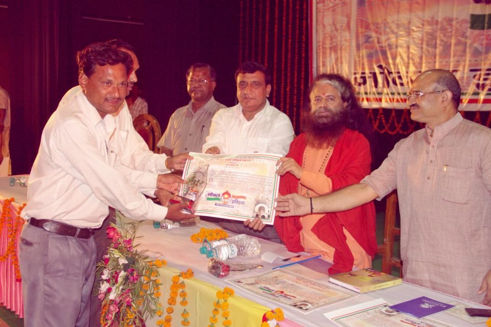 Pujya Swamiji was given the Noble Person’s prestigious award in Lucknow by Noble Parivar, a national family that brings together divine souls that are excelling in their respective fields and are giving back to society. Pujya Swamiji was honored by Dr. Arun Bhatt, Director PGI Noida, Shri Bhimjibhai Patel, Chairman of Standing Committee Surat Municipal Corporation (Gujarat) and Shri Chanyaka, Chief Editor Nobel India in excellence in the service of the environment and humanity. Pujya Swamiji was requested to honor and award a few other distinguished individuals in the fields of education, healthcare, literature, journalism and leadership. Pujya Swamiji commended the initiative and the committee and said that these noble souls are doing the true pooja (worship) every moment by serving not only God but also God’s creation. Pujya Swamiji also said that it was their service and spirit of giving that makes India Bharat and the reason why, despite the many challenges that the nation faces, there is hope and strength in its people, its culture and its heritage.