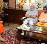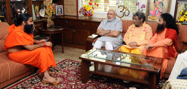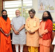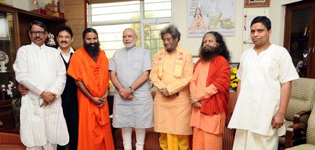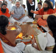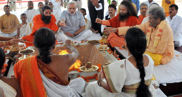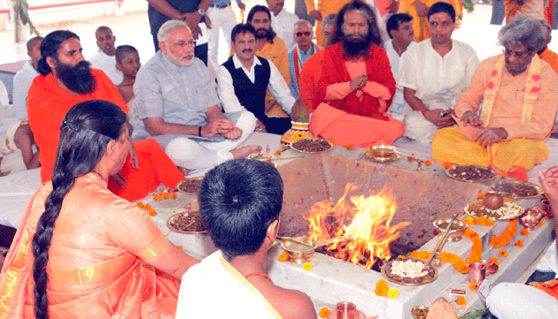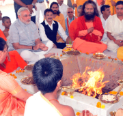 Pujya Swamiji applauded the great leadership efforts of Shri Modiji and encouraged that the talks at this event be focused around the welfare of the nation of India in all its diversity and cultures, not any particular caste or creed. Shri Modiji performed havan with a number of the saints, including Pujya Swamiji, Pujya Morari Bapuji, Pujya Ramdevji, Pujya Gurusharananandji Maharaj, Pujya Sant Rameshbhai Ozaji (Bhaishri), and Pujya Pranav Pandyaji, requesting blessings from the revered saints that were present not for His own political agenda but rather so that the power, love, respect and trust that people have of him continue and that he can be a leader who does good for all of humanity, not just a certain group such as Hindus. Shri Modiji fully agreed with Pujya Swamiji that “Haryali” – which means “green” in Hindi” – is the true progress of the nation, as “Haryali” will be when “Hari” (representing Hindus) and “Ali” (representing Muslims) come together. They pledged to work together for the preservation of the rich heritage which identifies and symbolizes India.