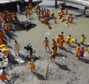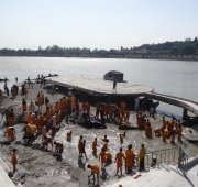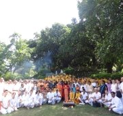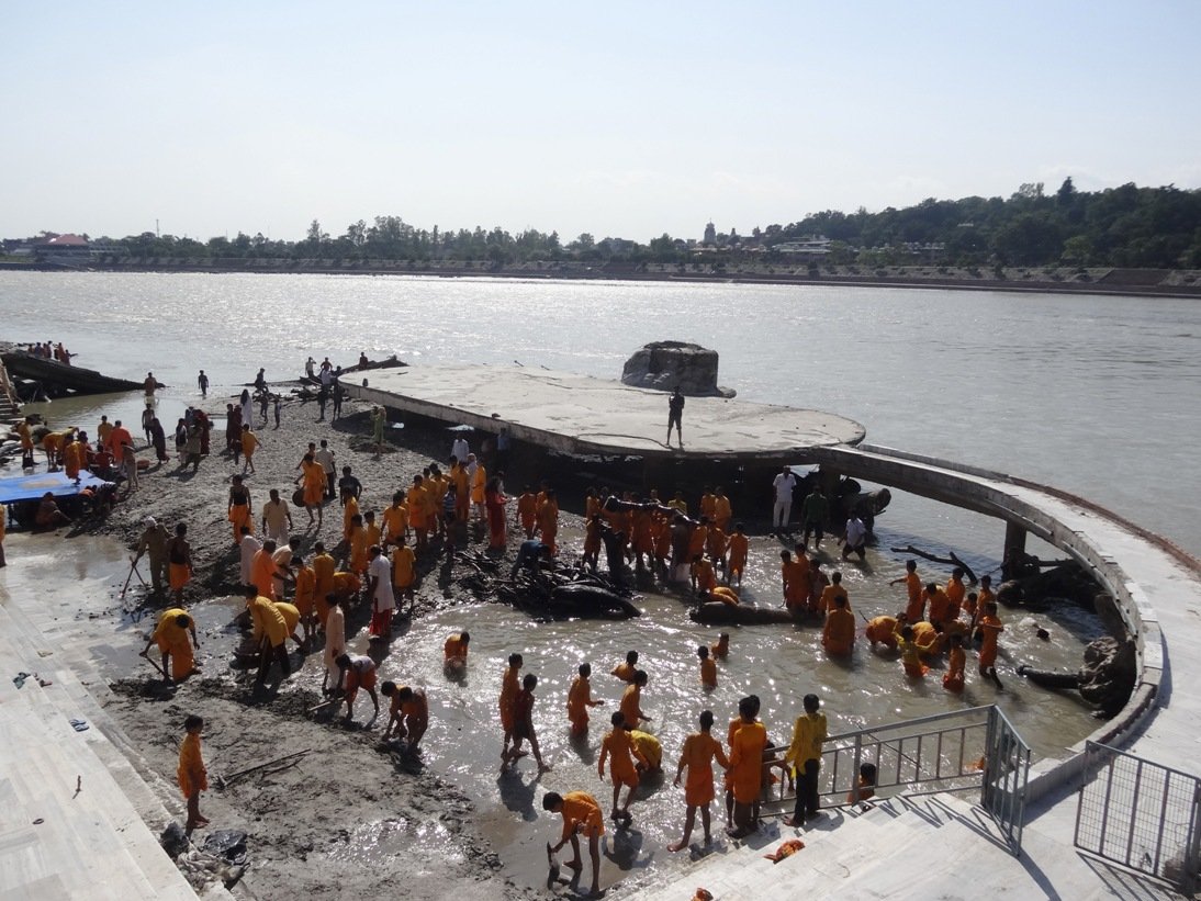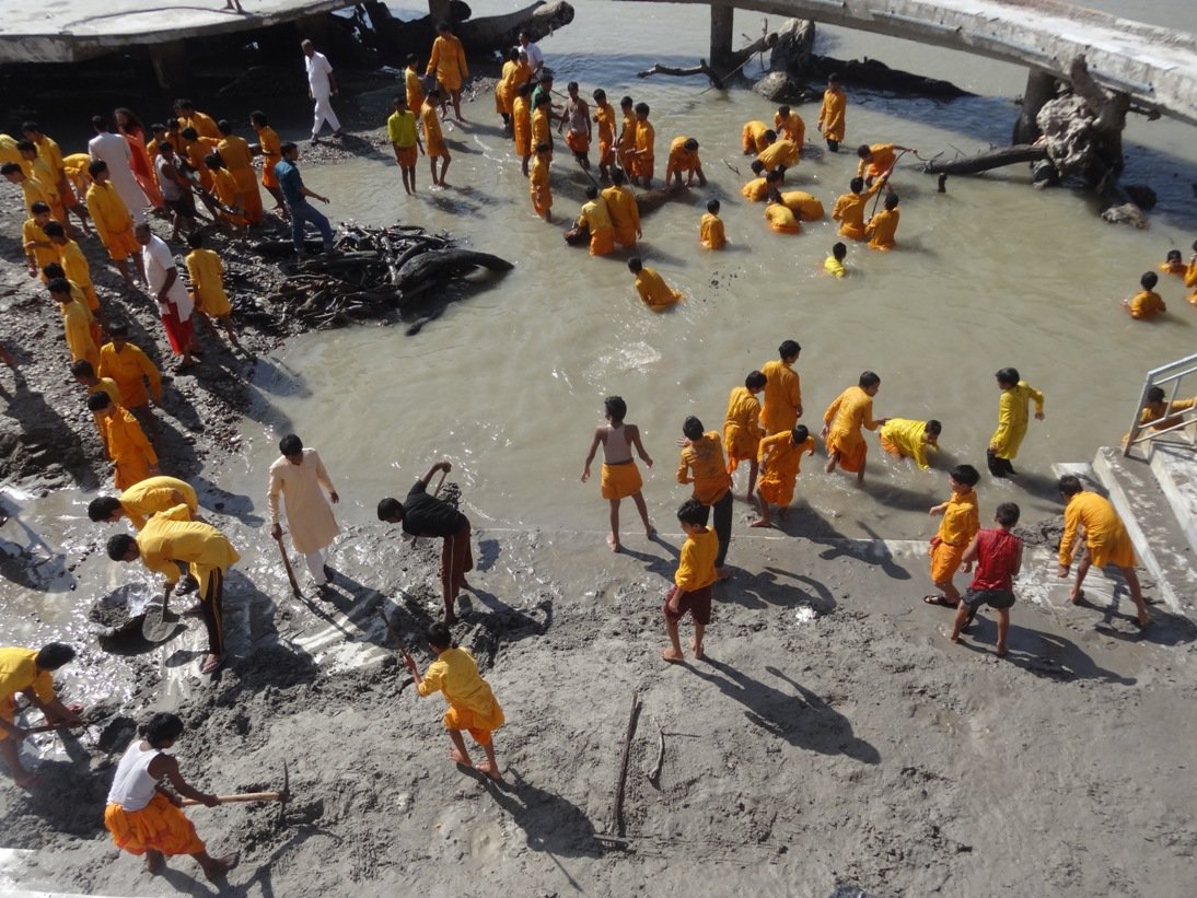 The events of the day included a collective feast, served by Pujya Swamiji, Himself, and the Rishikumars, and a massive cleanup of the Parmarth Ghat. The entire Ganga and Parmarth Parivar served with enthusiasm- as One- to remove the debris and massive siltation that had became visible as river water resides. Evening Ganga Aarti was preformed with prayers that the lesson from this year’s monsoon may help to transform each one of them as clean and green instruments of the Divine Mother- who teaches them vital lesson of how to give, give and give with no hesitation, no discrimination, no vacation and no expectation.