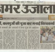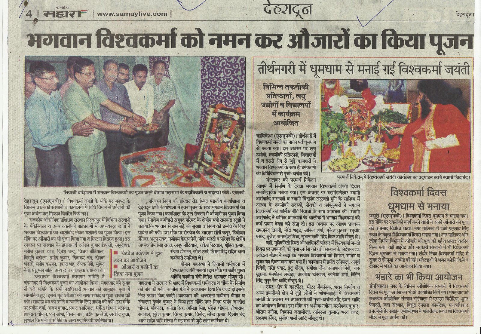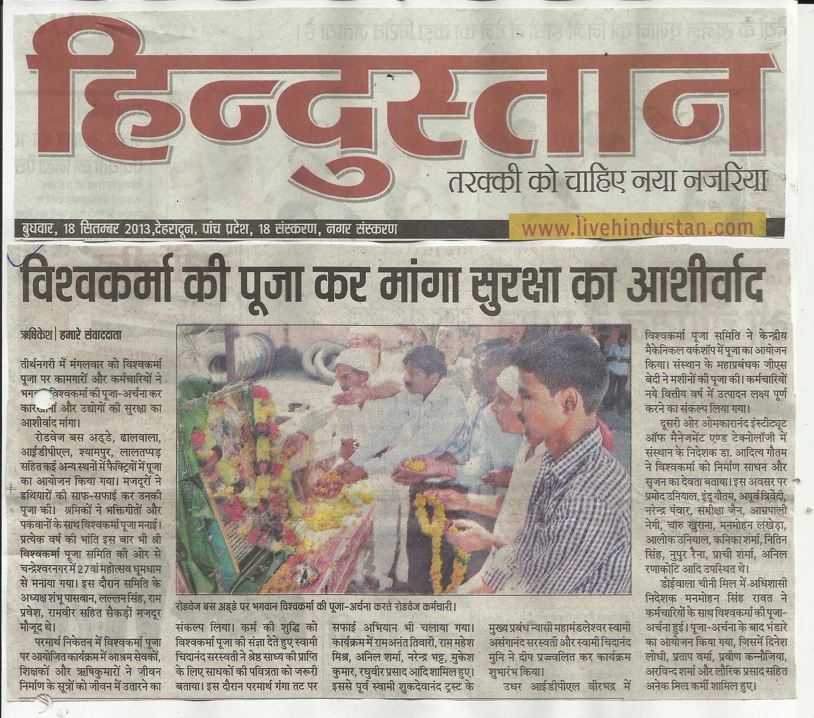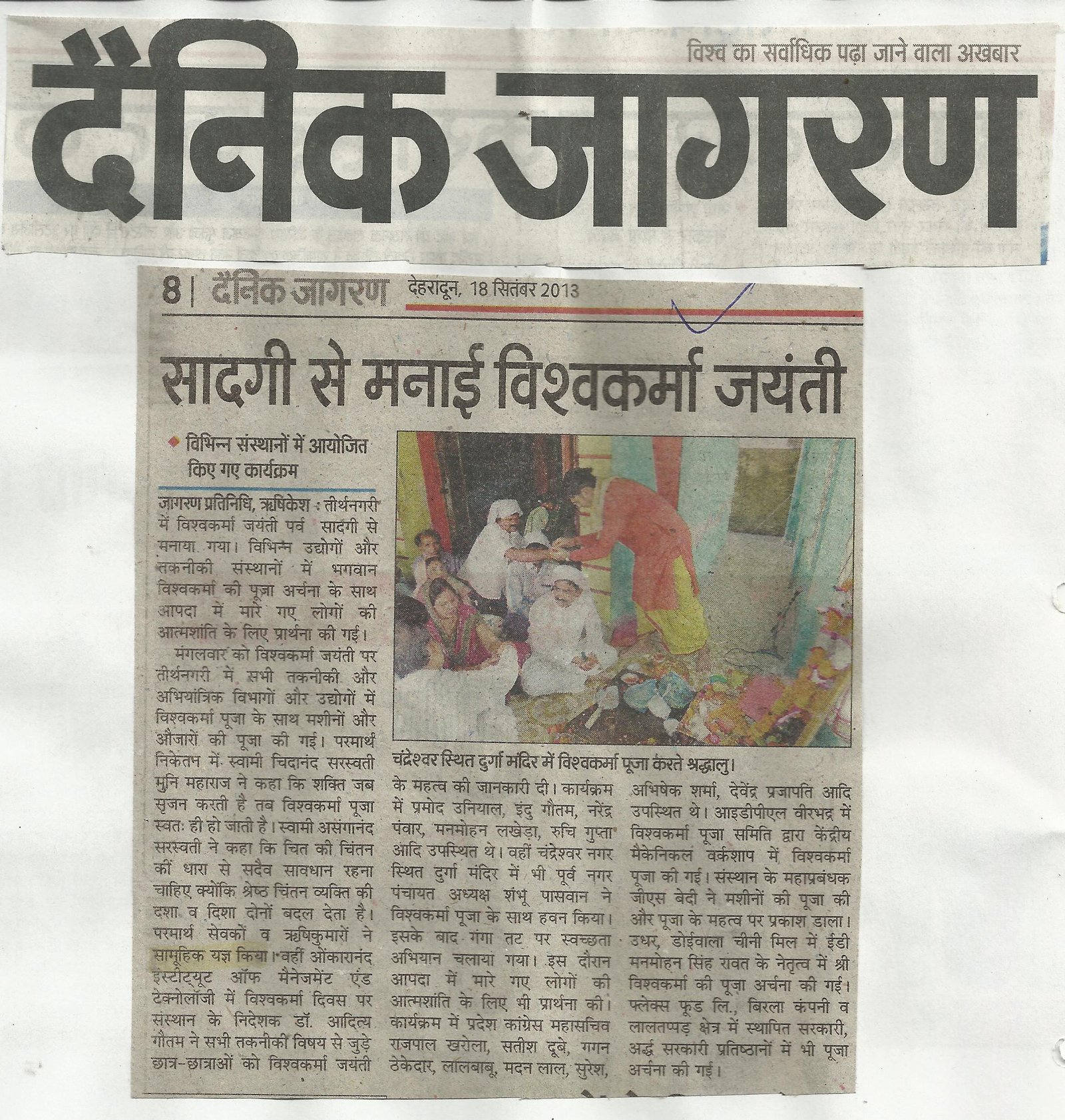 Pujya Mahamandelshwar Shri Asanghanand Saraswatiji and Pujya Swami Chidanand Saraswatiji along with the entire Parmarth Niketan family, including rishikumars, staff, yoga students and volunteers, celebrated Vishwakarma Jayanti with a simple yet profound ceremony. On this occasion, Pujya Mahamandelshwar and Pujya Swamijihighlighted that purity in deeds is the true way to observe Vishwakarma Jayanti.