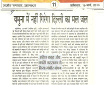 11-14 March, 2013: Yamuna Agreement with Water and Environment Ministries Press Clippings